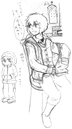 落書き集・その4 シンパチとルドルフ。 −−−−−−−−−−以下バイオレンスな表現−−−−−−−−−−− 瀕死の人にアザステをかけるのって大変だろうなぁ…でもそのシチュは好きだ。という思いつきから描いたもの。